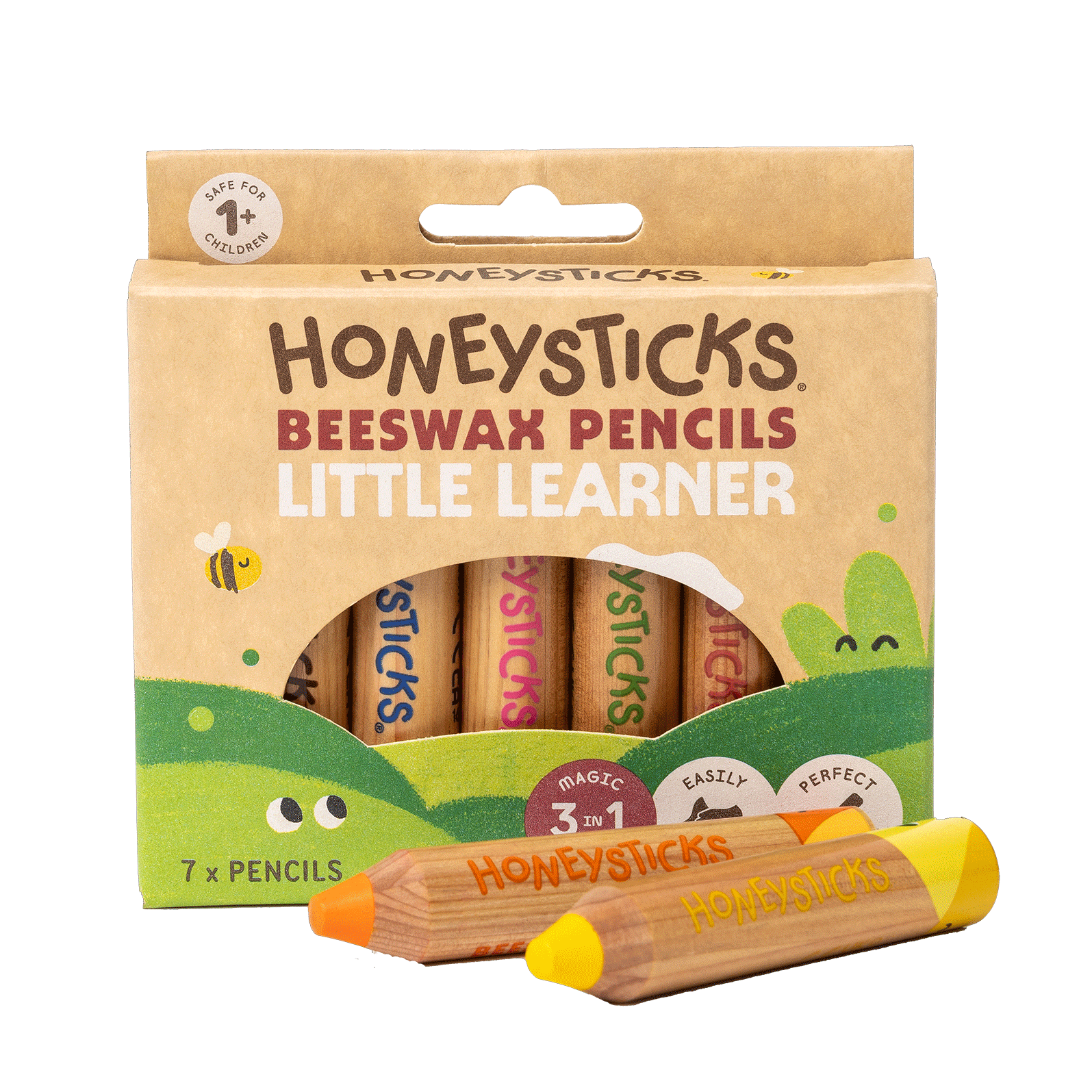 Honeysticks Beeswax Pencils for Little Learners are the perfect first step into creative play. Designed with pure New Zealand beeswax and a chubby, easy-to-grip shape, they’re made for toddlers aged 1+ to explore color, water, and drawing on glass safely. Short and chunky to support grip development in toddlers just starting their creative journey. Non-toxic and thoughtfully designed for curious creators.