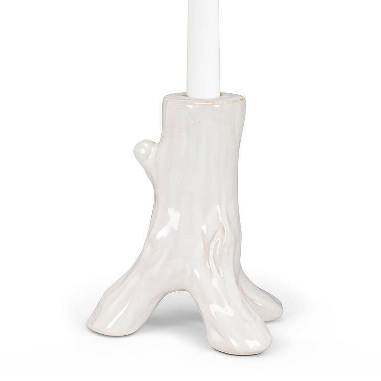 Our Large Trunk Taper Holder is a rustic and charming accent for your home decor. Made of ceramic, it provides a sturdy base for taper candles, creating a cozy and inviting atmosphere in your living space. Whether displayed on a mantel, dining table, or as a centerpiece, our tree trunk taper holder brings the beauty of nature indoors, perfect for adding warmth and character to your home.