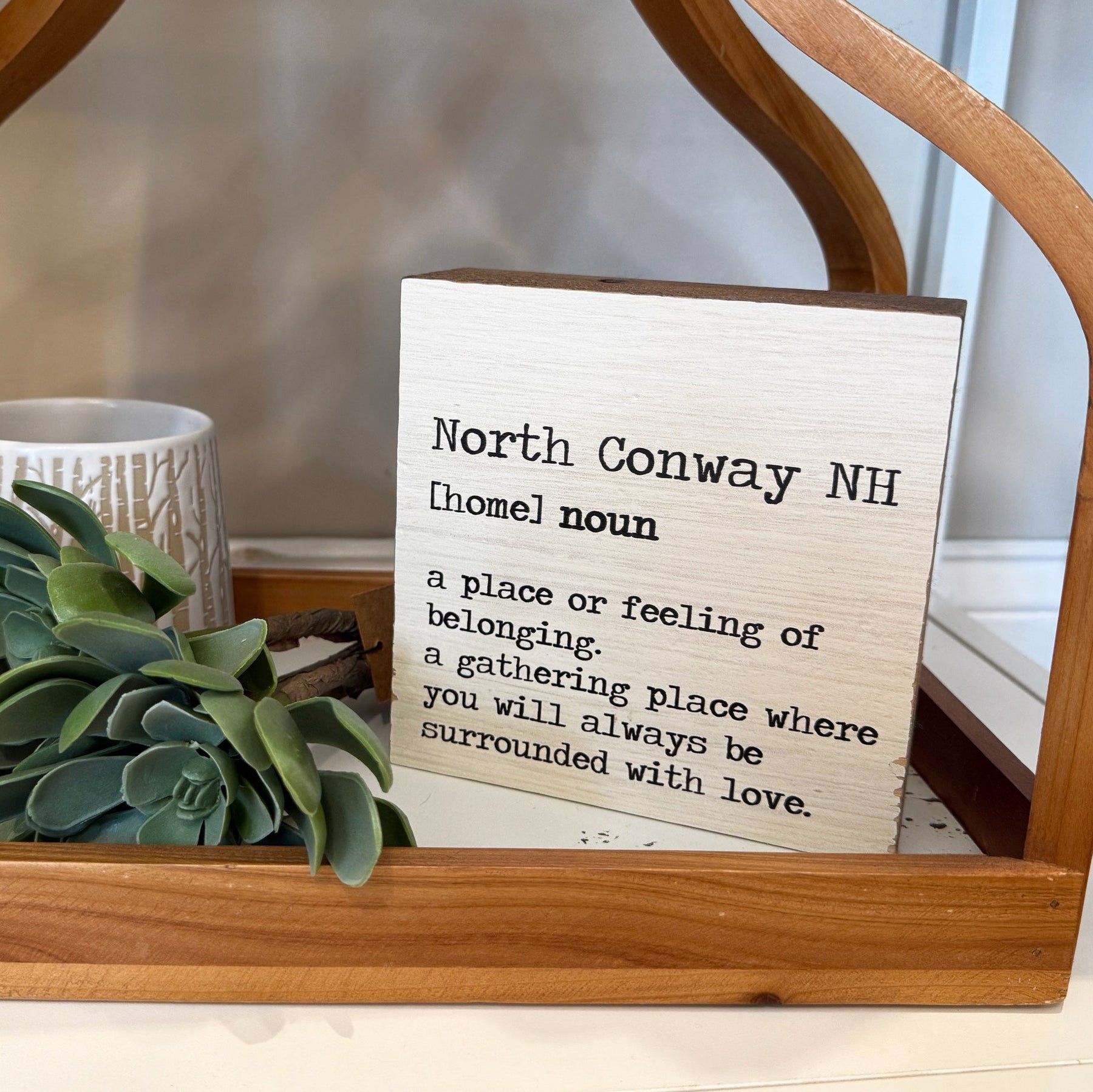 Personalized North Conway Rustic Square Block. Square rustic blocks are a fun way to add personality to any shelf or mantel; the perfect shelf sitter! Our high-quality home décor is handcrafted and made to complement any room. Made in the USA.