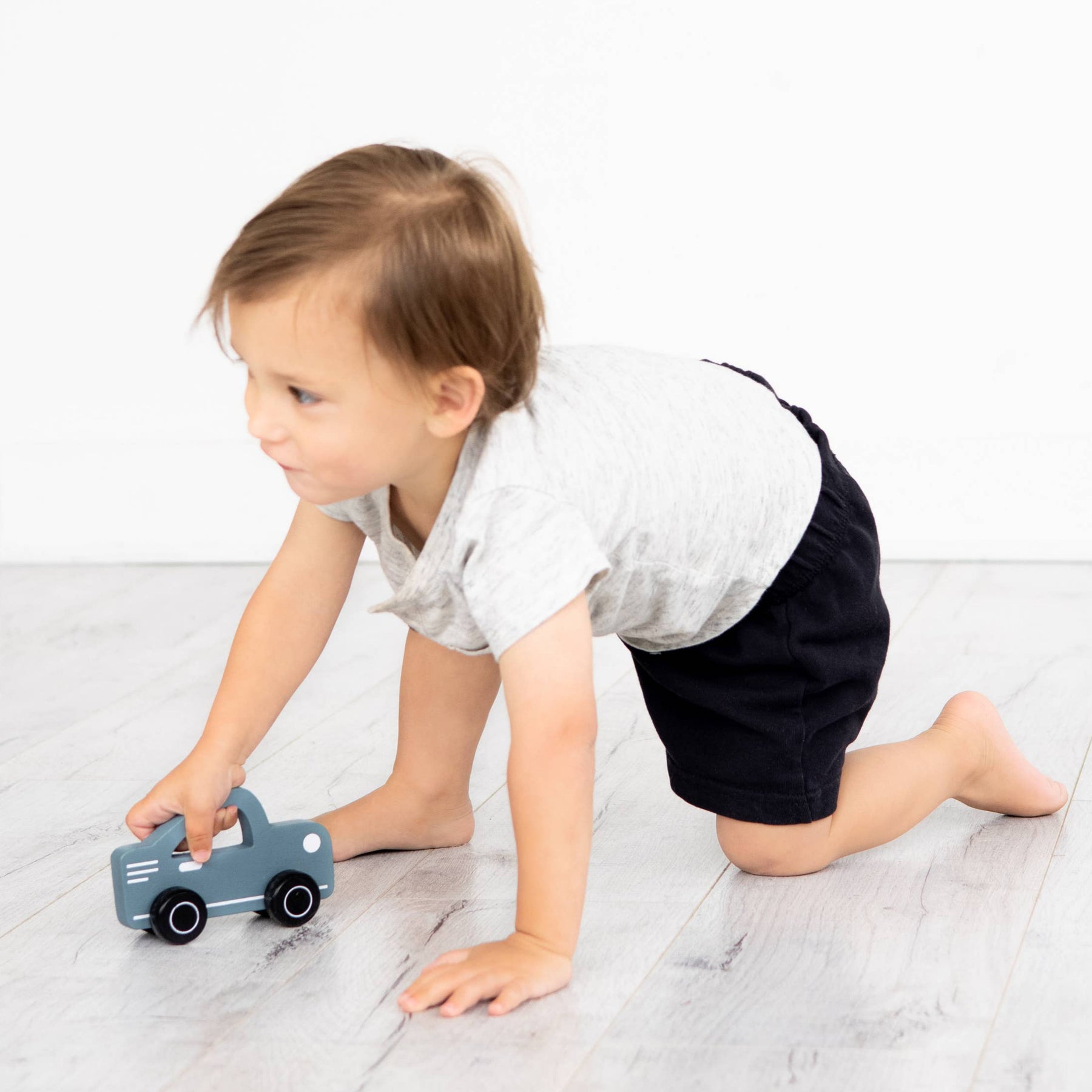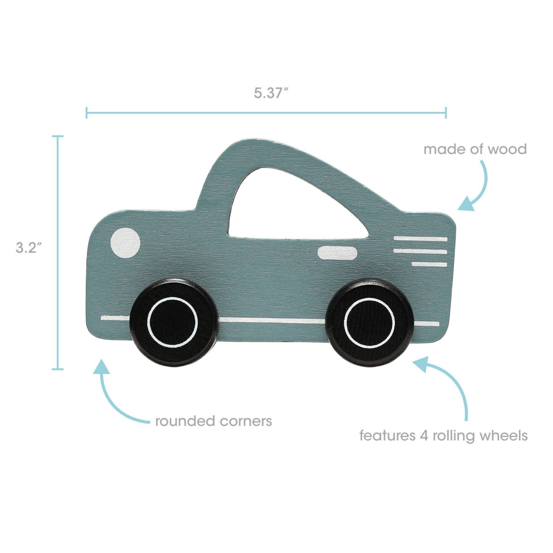 Your little baby girl or baby boy will love playing, racing and revving with this adorable wooden car push toy by Pearhead! Includes one wooden, muted blue toy car perfect for exploring during playtime. This fun push and roll baby toy will help parents and their little ones create special memories they will share and love for years to come, and when playtime is over, this wooden car makes the perfect nursery decor accessory!