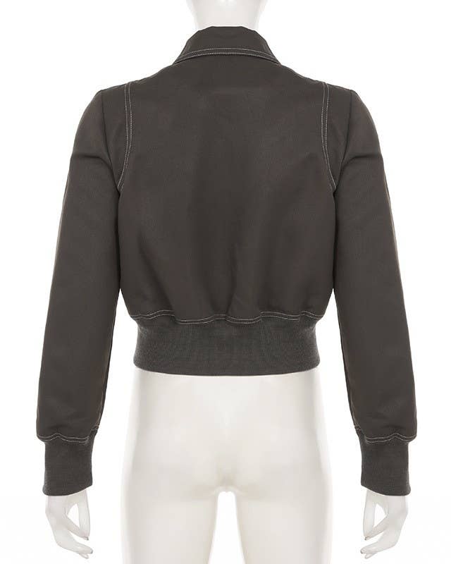 Vintage Cropped Slim Fit Zip-Up Jacket in Deep Green