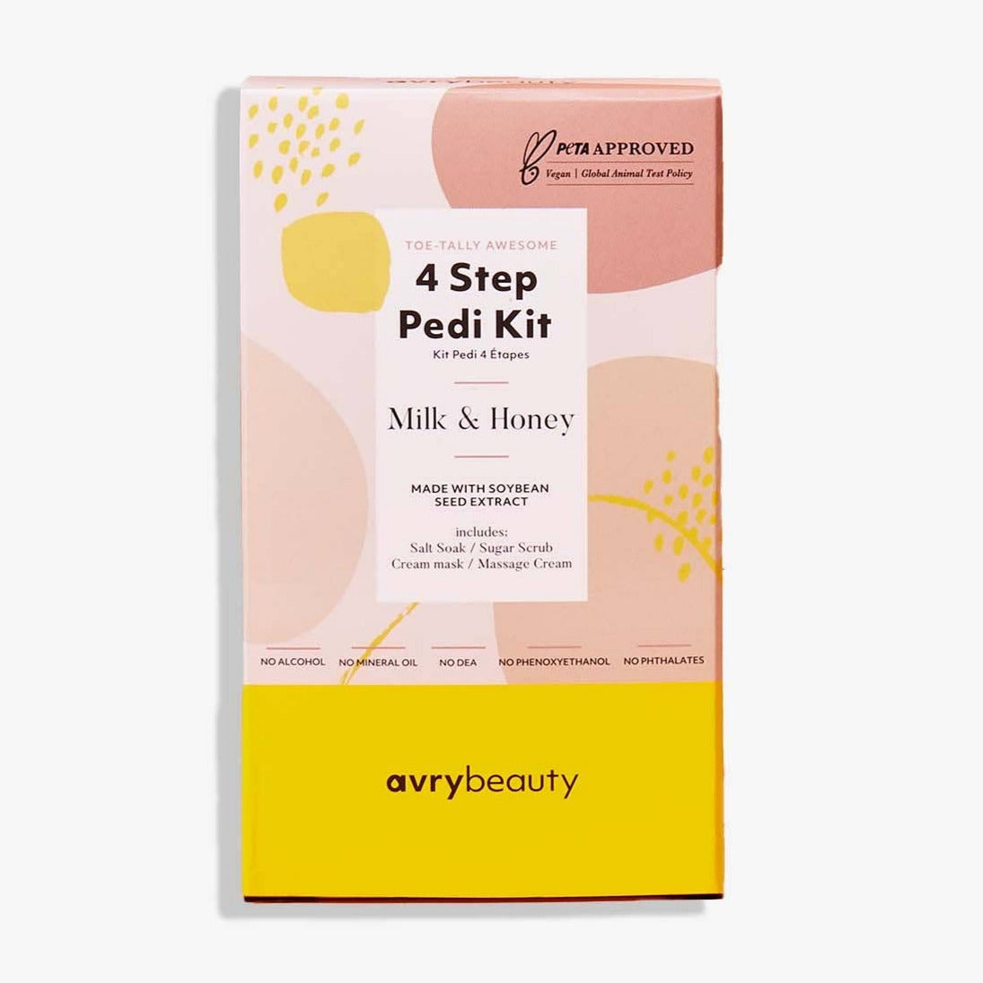 Milk & Honey infused 4-Step pedicure kit is the perfect remedy for dry, irritated, or itchy skin! This kit includes pre-packaged sea salt soak, sugar scrub, cream mask and massage cream. What it is: