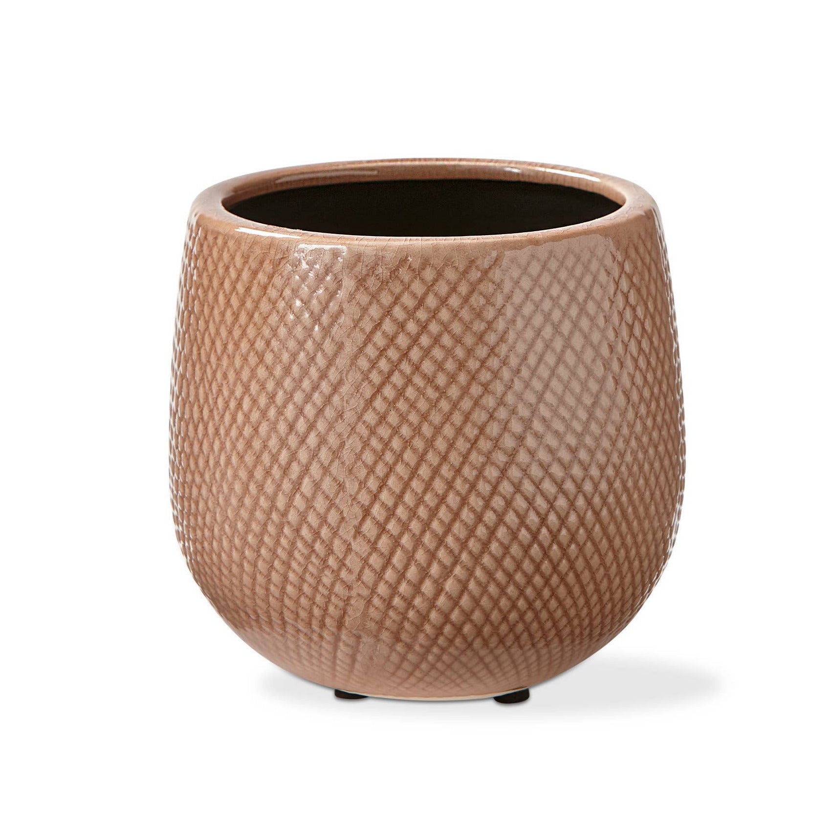 Inspired by the sweet touch of the warm sun, this textural cross hatch planter brings a vibrant and natural vibe to interior decor. Showcasing stoneware construction, shiny glaze with exposed clay bottom, this decorative planter gives your household foliage a beautiful upgrade. Features include a drainage hole with silicone plug.