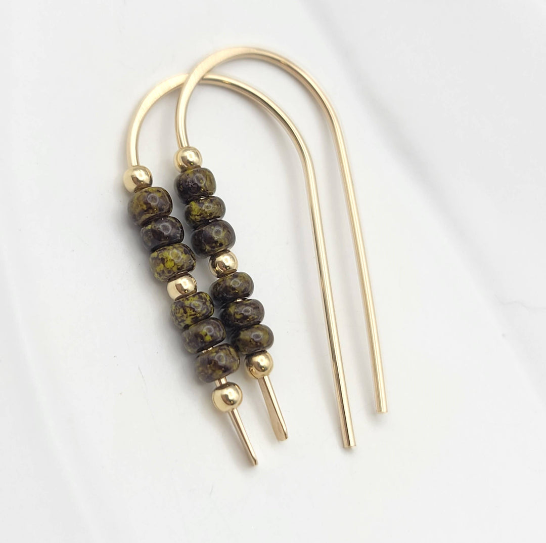 Earth Tone Beads and 14K Gold Filled Dangle Earrings