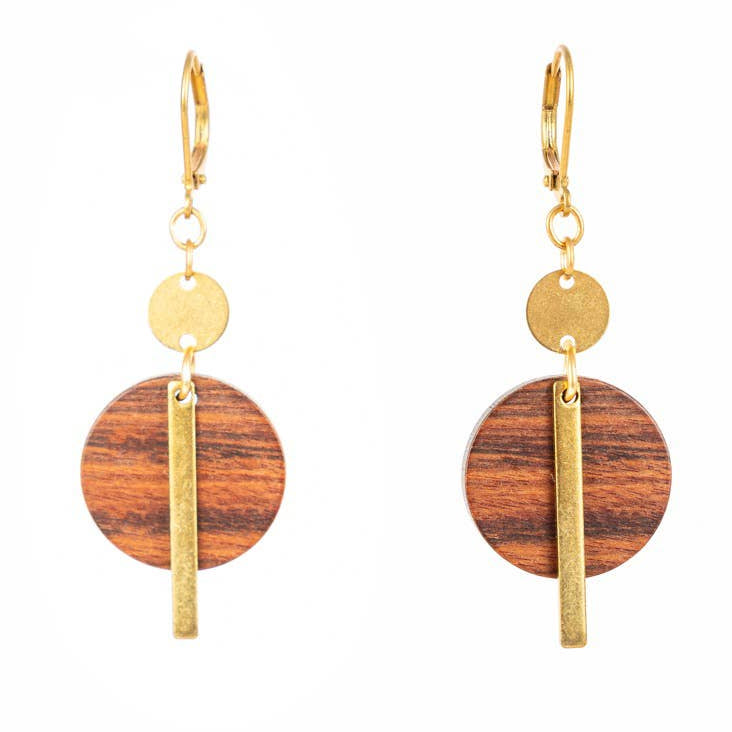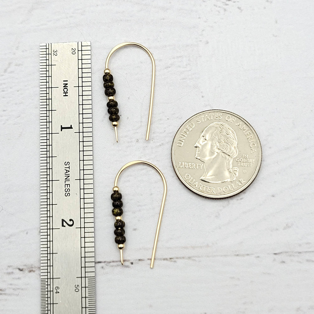 Gold Threaders Earrings with Dark Brown Olive Beads