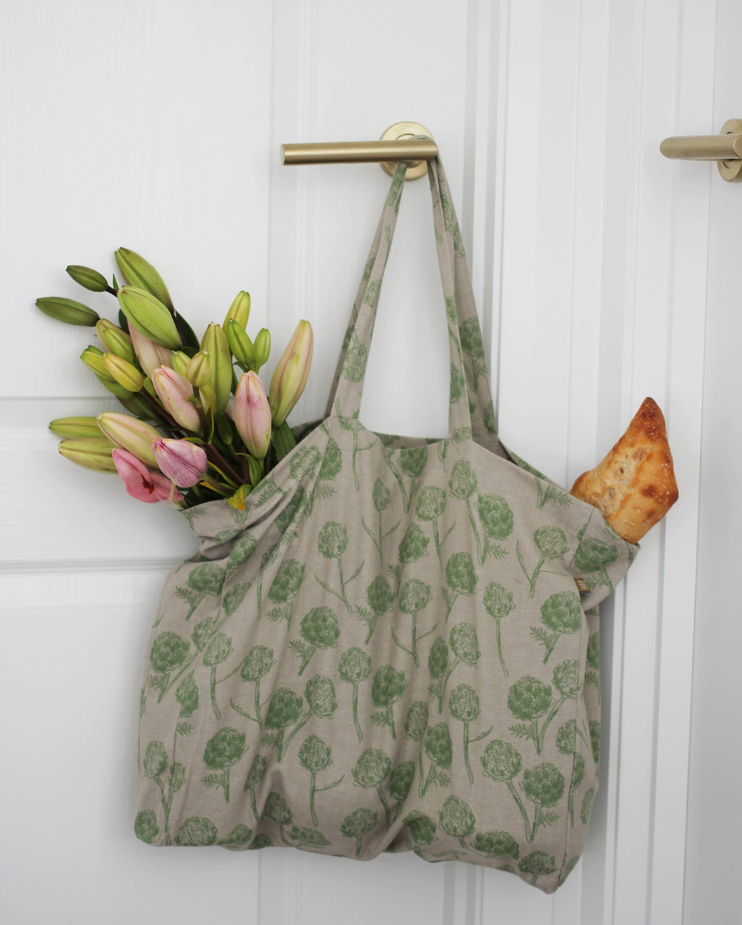 Note the video attached shows how you can fold the bag into the pocket for easy stashing or throw it into another bag or coat pocket. (Pattern shown on the video is the Fig design.) Combine with coordinating Aprons, oven gloves, tea towels, and totes.
