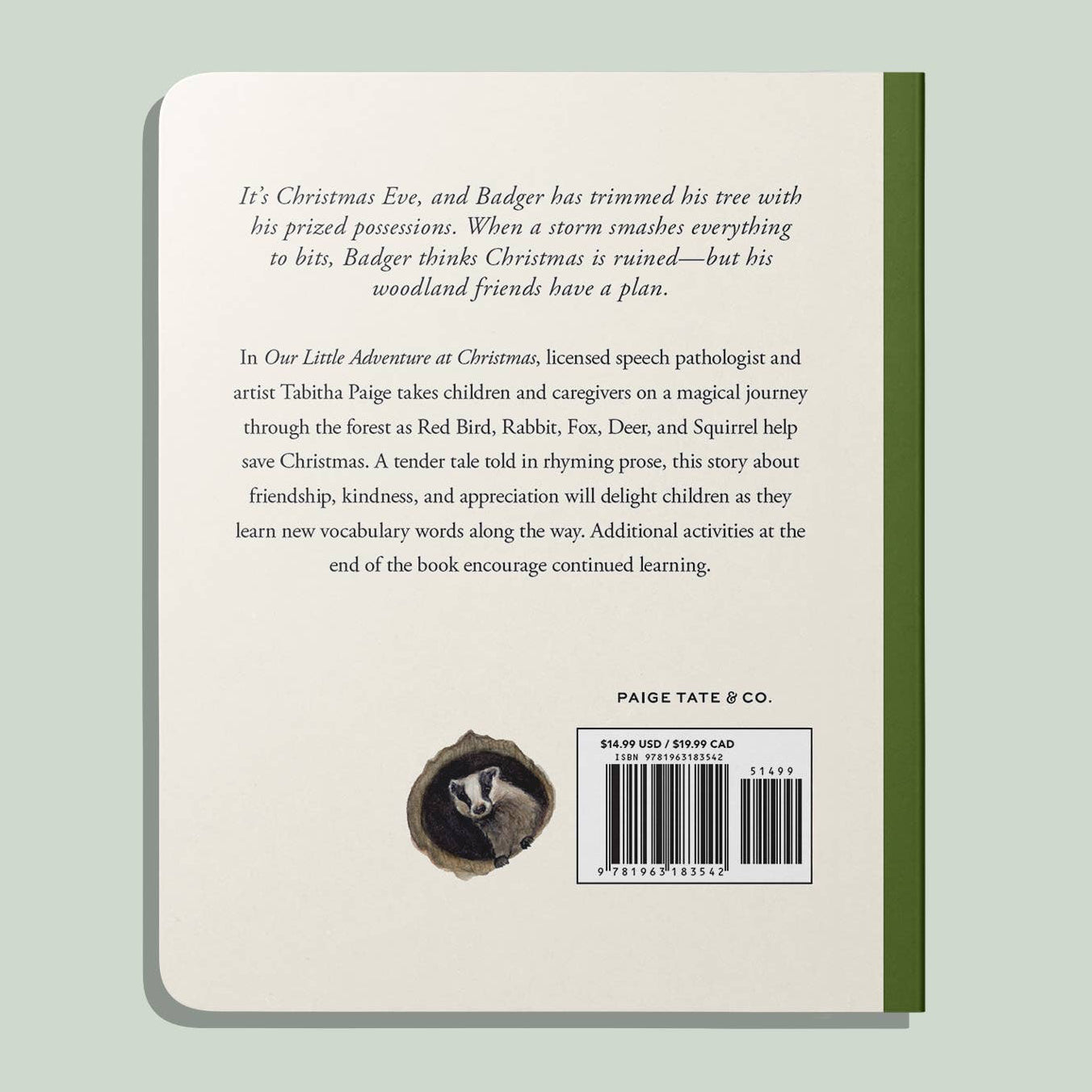 A festive, educational board book that blends early language development with the joy of Christmas—perfect for toddlers and holiday gifting. Our Little Adventure at Christmas follows woodland animal friends as they learn the true meaning of giving.