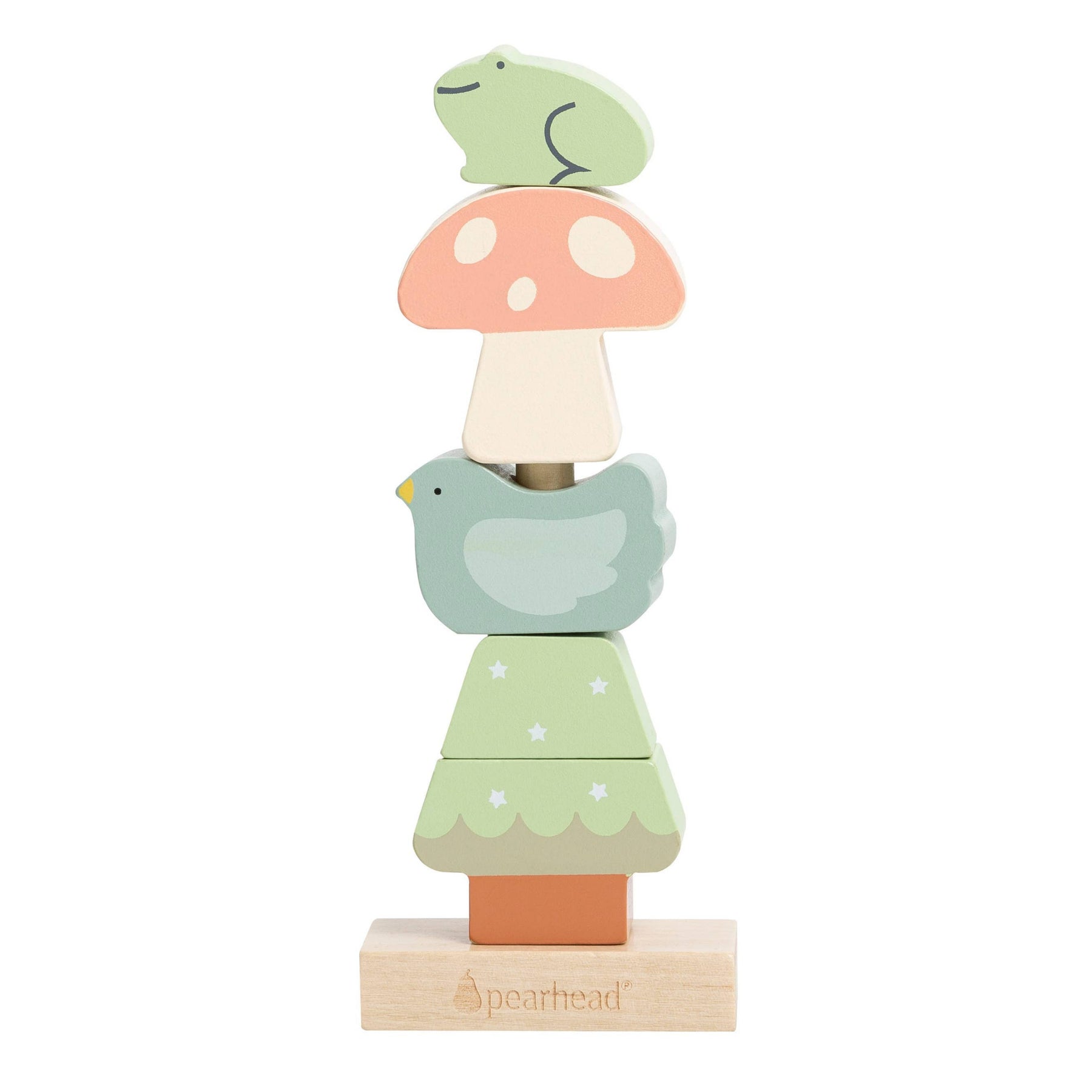Pearhead’s woodland themed wooden stacking and sorting toy is crafted to engage young minds, encouraging learning and faster development during playtime. With safety as a top priority, the toy features smooth edges, and non-toxic baby safe paint making it ideal for children aged 12 months and up. Parents can have peace of mind while little ones explore and play. The set includes 5 stackable pieces: a 2-piece tree alongside a mushroom, bird, and frog, providing endless fun. Watch as your child's imagination blooms with each combination.