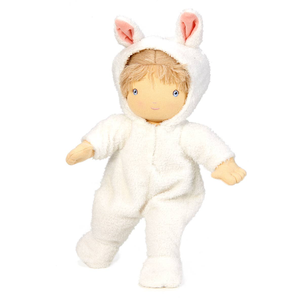 Lilli doll is a wonderful weighted baby doll who wears a soft bunny baby grow and a nappy underneath. Complete with a lovely embroidered face and realistic woolen hair, this baby doll is specially designed for pretend play with children! Great for popping into a pram and going on a stroll, or simply just as a friend at a pretend tea party.