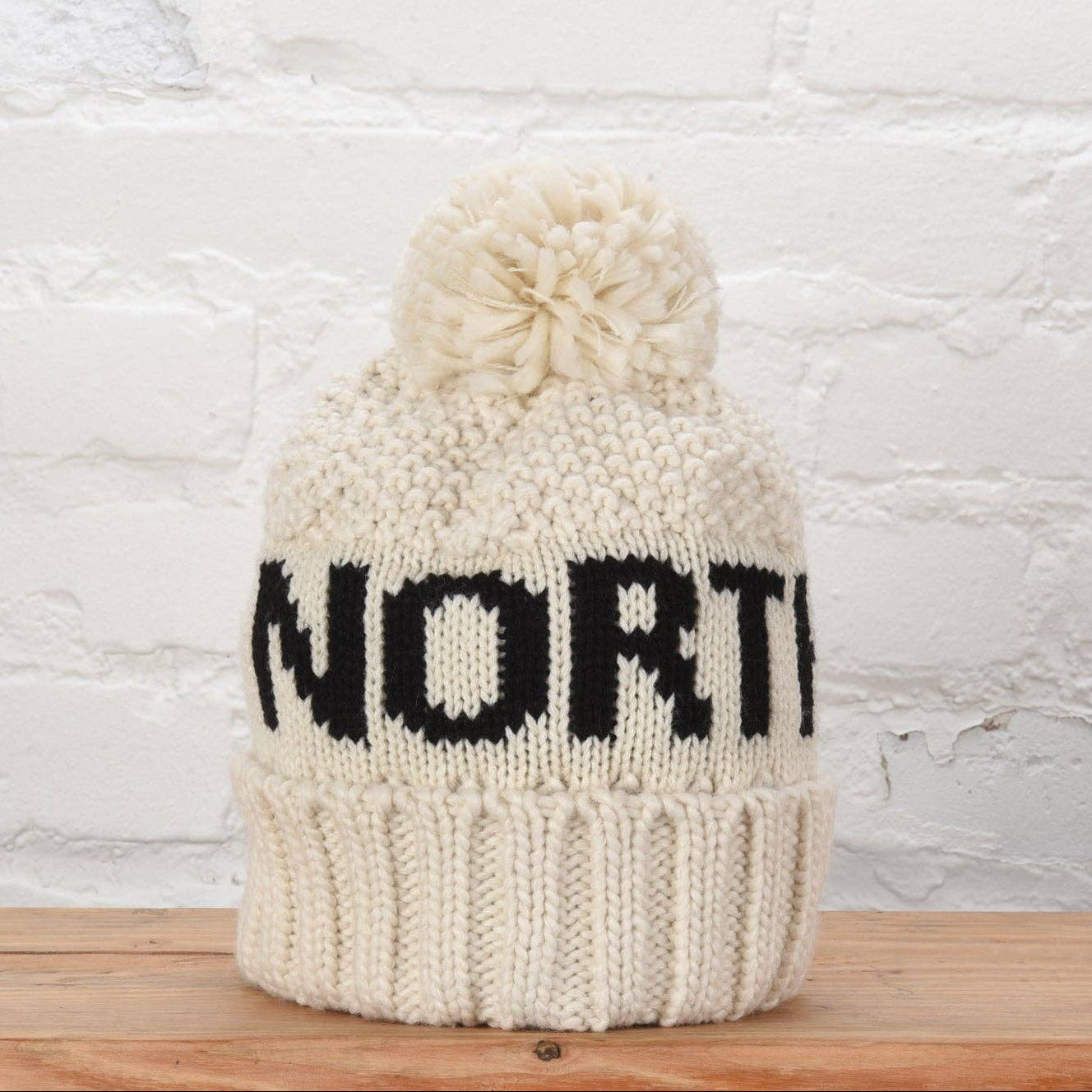Whether you're a native or a newcomer, this beanie lets you wear your love for the Northeast on your head. Its timeless design ensures it never goes out of style, making it a perfect addition to any outfit. Cream with a black logo, topped with a fun knitted pom and lined for extra warmth.