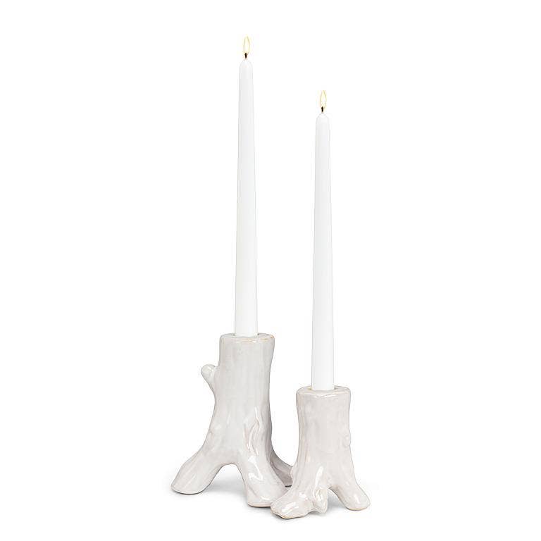Our Small Trunk Taper Holder is a rustic and charming accent for your home decor. Made of ceramic, it provides a sturdy base for taper candles, creating a cozy and inviting atmosphere in your living space. Whether displayed on a mantel, dining table, or as a centerpiece, our tree trunk taper holder brings the beauty of nature indoors, perfect for adding warmth and character to your home.